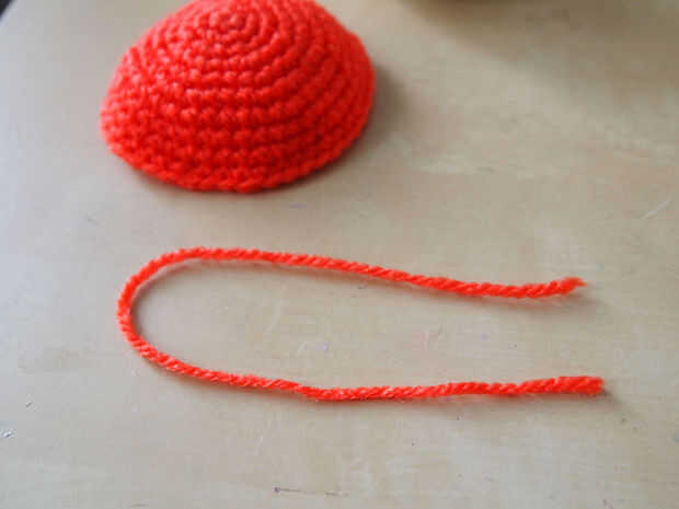 Para agregar el pelo real, corté el hilado en hebras el doble de largo que quiero el pelo para ser y conectado a través de los agujeros en la tapa de la pelo. (Ver este para instrucciones).