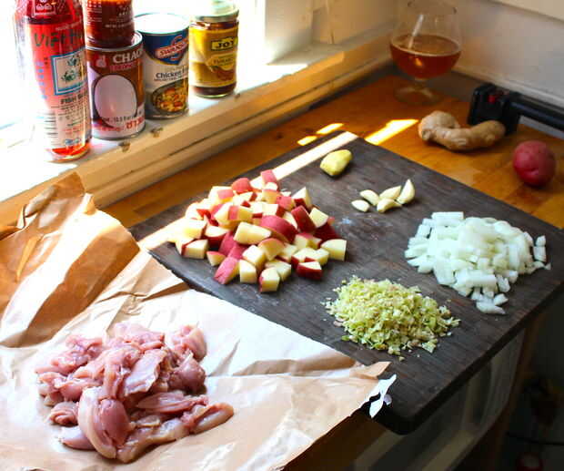 Pique te limoncillo (y ahorrar aproximadamente una cucharada para poner cerca del final de la cocción) y trocear la cebolla. Pelar la cebolla y el ajo, puede picarlo o rallarlo directamente en la sartén. :)