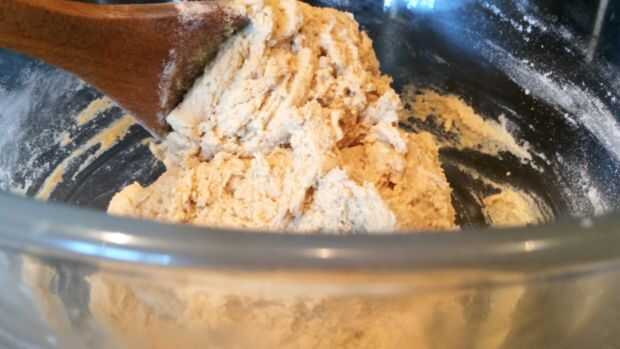Bata la mantequilla y el azúcar, esto puede hacerse a mano o usando una batidora eléctrica. Agregar los huevos y revolver bien. Jugo de una naranja y añadir 3 cucharadas de jugo de naranja a la mezcla junto con el extracto de vainilla. En un recipiente aparte, mezcle la harina, la sal y el bicarbonato de sodio con un batidor. A continuación, agregue los ingredientes secos a los ingredientes húmedos y mezclar hasta que se forma una masa.