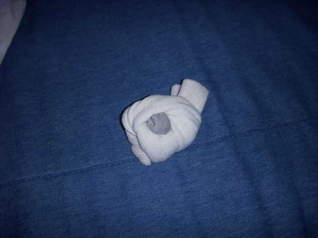 SEGUNDO: cuando la bola está en el calcetín, tia un nudo en él y retire el calcetín extra y envuelva la otra bola y el nudo que hace una parte más grande. (perdón si no entiendes la razon, me mudé a México y me estoy acostumbrando a la lengua española).