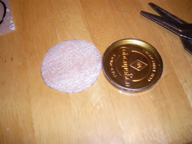 a continuación, poner mucho pegamento en la primera hoja de la tapa y el pegamento en el tercer círculo un poco más pequeño