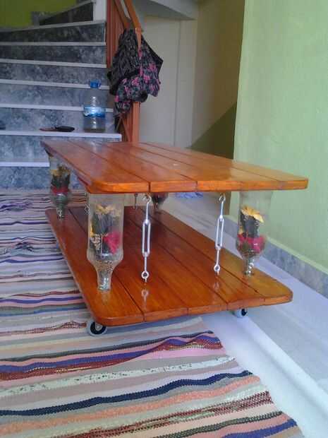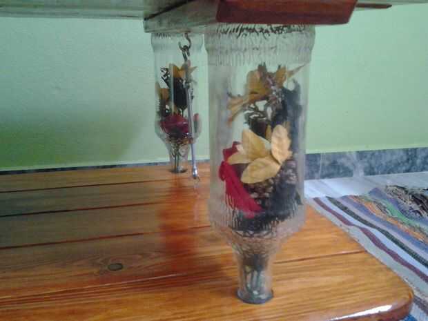 Usé eso materiales: 10 cm x 1 m x 20 mm pino madera 12 piezas suficientemente del tornillo y del clavo, brillante brillo y lustre roble rústico, cuatro pedazo de botella de vidrio y flores falsas.
