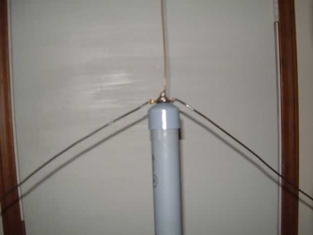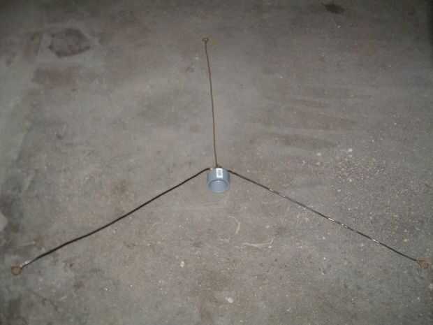hice esta sencilla antena para la banda de 2 metros de radioaficionados y afixed a un tapón. Enrosque el cable coaxial a través de cada sección a partir de la parte inferior y luego lo conecte a la antena. Fijar la antena en la parte superior y ensamble las secciones de arriba hacia abajo aumentando el mástil vertical. Mantener el mástil en su lugar mientras que un ayudante toma relevo en las cuerdas de individuo.