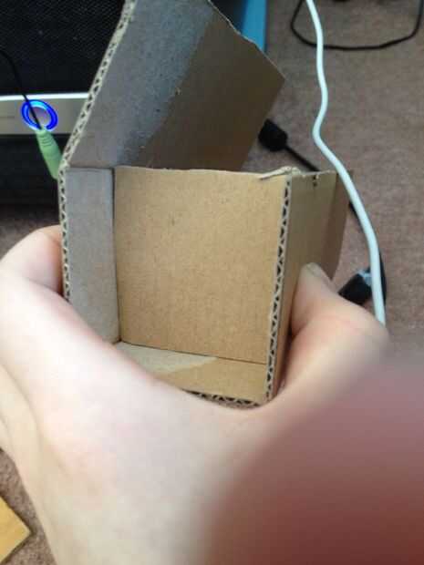 Corte dos cuadrados que son el mismo alto y ancho como la caja. Coloque en la caja como se muestra en la imagen. Esto puede ser incómodo y me recomendó que hacer esto una vez en un momento.