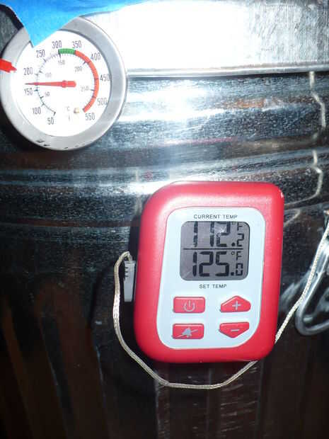 Tarda un poco mientras que para que el puede calentar para arriba inicialmente, pero que realmente no desea tener la temperatura dentro de la lata (medida por el termómetro de larga-probe) sobre 130F. Recuerde que factores ambientales como el viento (o aire todavía) pueden afectar la temperatura en la can, por lo que podría flotar a una temperatura por una hora o más y luego cambiar temperatura - me parece que puede asomar por la primera hora ot dos y entonces 25degrees de subida, más o menos en pocos minutos ya que consigue al final del proceso de calentamiento.