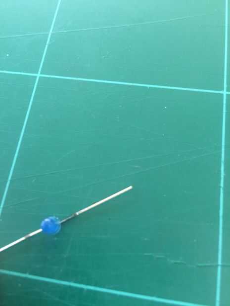 2. Tome un LED, doblar las piernas como hacen las fracturas, y se sentará la base LED plana en el papel. Ayuda a utilizar los alicates de punta.