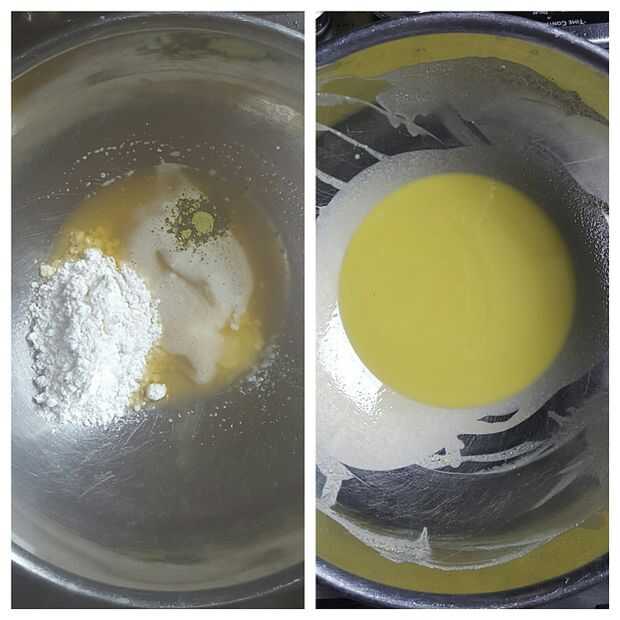 Agregue azúcar, leche de coco y polvo matcha repostería tamizada. Revuelva hasta que no queden grumos en la mezcla de chocolate.