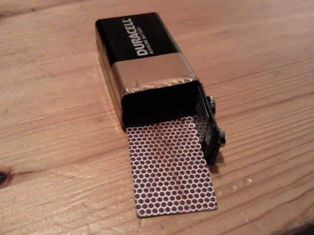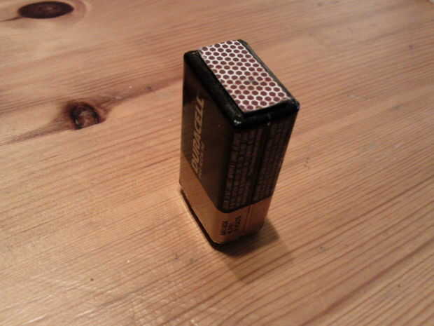 -corte lo suficientemente pequeño como para pegamento a la parte inferior de la pila de 9V.
