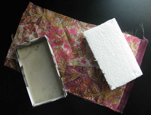 ~ Cortar a la tela aproximadamente dos veces las dimensiones de la caja de cerillas.