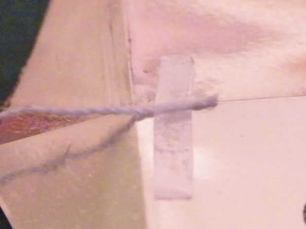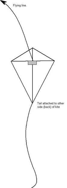 Utilizar otro pedazo de cinta adhesiva, pero Conecte la línea a la parte delantera de la cometa, en la parte superior del pliegue, con la línea que va hacia la parte delantera de la cometa.