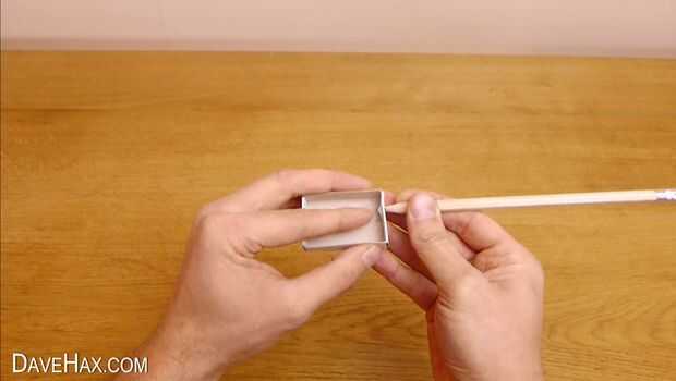 Tome una caja de cerillas vacía y quite la gaveta. Luego utilizando un lápiz afilado meter dos agujeros en cada extremo del cajón, como se muestra en las fotos.
