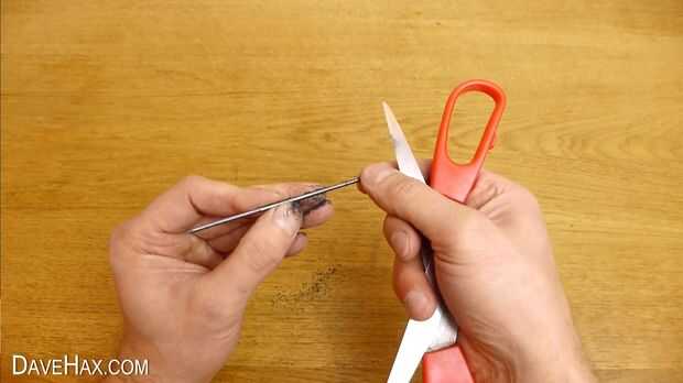Tomar un par de tijeras y ejecutar cuidadosamente la hoja arriba y abajo de la longitud del grafito para crear una superficie plana en un lado.