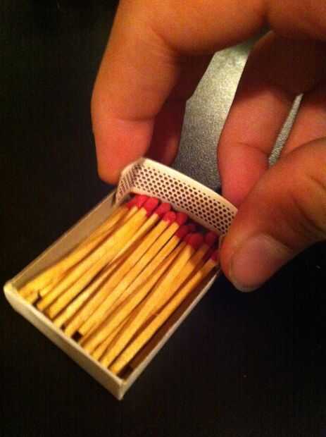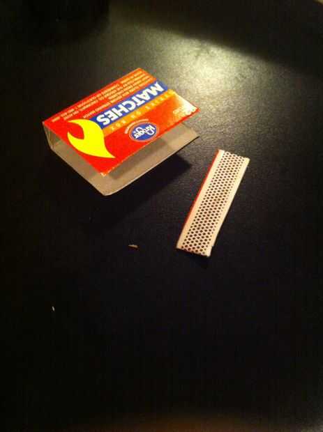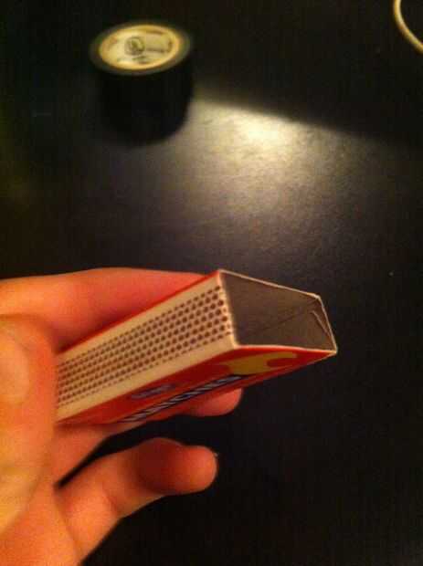 Sacar la caja externa de la caja de fósforos y cortar uno de los lados impresionantes hacia fuera, luego colocar en la parte delantera.