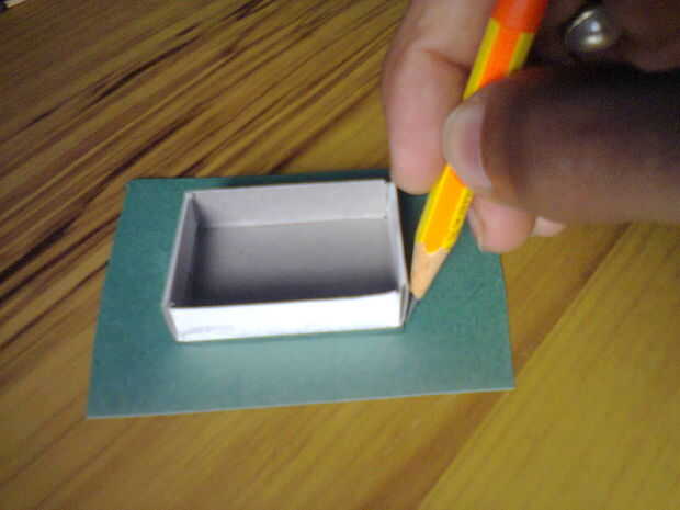 Para ello tienes que coger la caja interna de la caja de cerillas y trace una línea hacia fuera de él en el papel tiene.