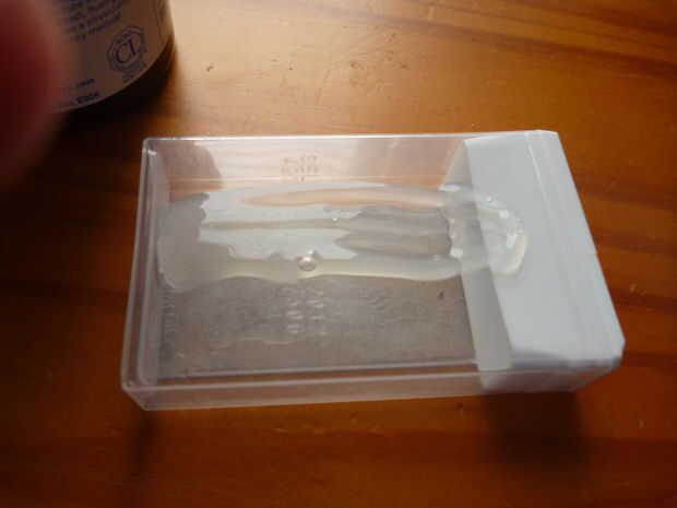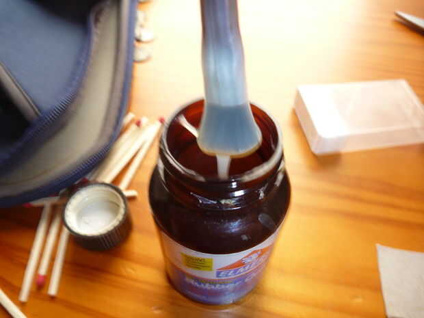 Si no tienes ningún pegamento, o es un poco demasiado peligroso para usted, en su lugar puede utilizar pegamento de caucho. Para pegar simplemente cepillo una pequeña cantidad en la parte posterior de lo sriker cubriendo toda la superficie y una pequeña cantidad en la parte delantera del cepillo en el envase. Entonces endecha el delantero pegamento de lado a lado en el envase del pegamento y deslice el percutor en lugar perfecto.