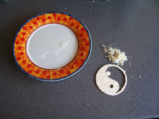 Tome su platillo y poner un poco de agua caliente en ella luego cuidadosamente humedecer el respaldo de la tarjeta y a frotar por lo menos la mitad de ella, no tanto que vas todo el camino a la madera sólo suficiente así que se suele mostrar, generalmente dejo un papel, capa fina, cuando haya terminado de dejar que se seque hacia fuera para un mientras.