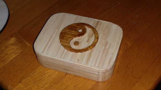 El siguiente proyecto fue una lata de tabaco para mi primo Colin, le habían dado una de las latas de primeras he tomado hace más de treinta años por lo que sólo parecía apropiado que debe tener uno de los primeros de la nueva generación el resultado fue la lata rectangular de Yin Yang en la foto.