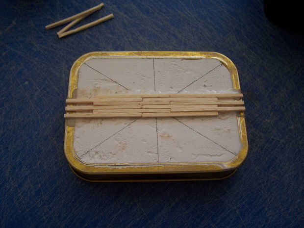 Con las latas y partidos utilizo el siguiente paso se hace con partidos en medio se pueden encontrar otras latas o partidos son de distintos tamaños a la mina, llenar los vacíos en el peine para que la lata está ahora totalmente cubierta superior e inferior.