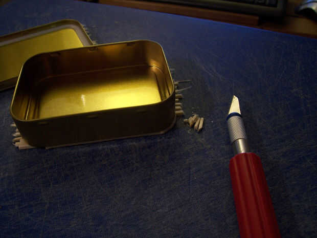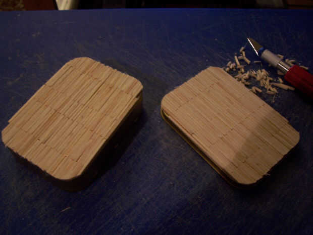Ahora su cola es buena y seca necesita a corte los partidos alrededor de los lados, generalmente hago esto en una tabla de cortar, sólo espera la lata hacia abajo firmemente y recorte de la partida termina uno por uno, no te preocupes si el impar viene suelto siempre puede pegamento de nuevo en y no intentes cortarlo demasiado cerca a la lata una vez que termines te puede la arena a tidy up.