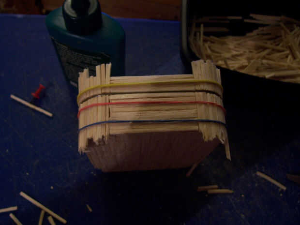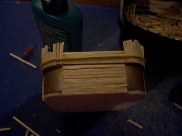 Una vez hecho esto puede llenar las esquinas curvas con secciones de los partidos corriendo el estaño, asimiento en lugar con bandas de goma y dejar que se sequen antes de podar apagado.