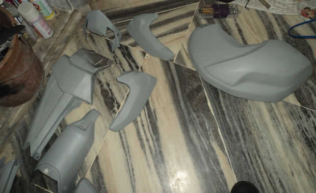 Limpie las piezas con agua y ponerlo en seco. Cuando las piezas consigue seca aplique la primera capa, aquí en la India su llamado P.S.GREY. Terminar todas las partes mediante la aplicación de la capa y se deja obtener secado durante unas 3-4 horas.