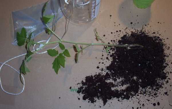 Al separar las raíces de la planta del suelo y empuje suavemente las raíces en el fondo de la maceta. En ese momento colgué el plantador de sótano techo después até la cuarta cuerda en el nudo de los otros tres. Esto hace mucho más fácil de llenar.