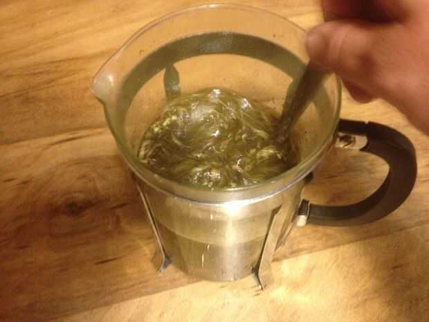 Nota: tengo una prensa francesa gigante (¡ gracias Beth!) - tuyo probablemente se verá más completo con la misma cantidad de líquido.