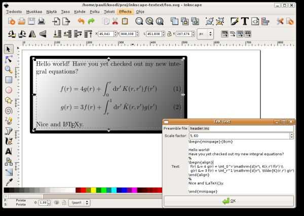 Textex le permite insertar fácilmente fórmulas o expresiones en proyecto de inkscape, usando la sintaxis de LaTeX.