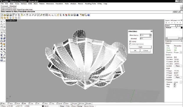En Rhino solía compensar malla espesa en la superficie. Hice clic en la casilla de verificación para solidificación crearía una malla sólida y creado de 2mm de espesor.