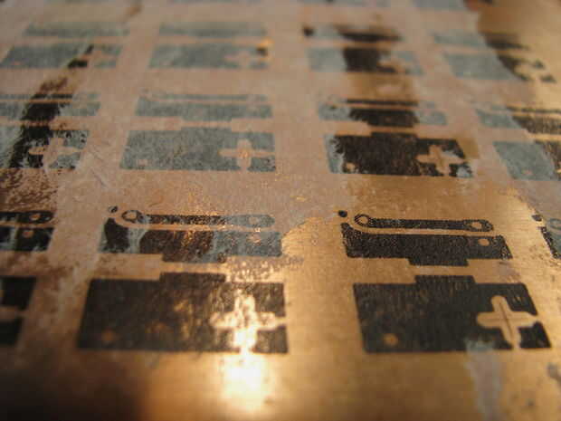 sí, pero otro toner transferencia tutorial grabado de PCB - pero espere! He experimentado mucho y encontró la clave para producir resultados fiables. El secreto está en la ejecución, no los materiales. Ahora estoy produciendo 2 cara PCB con pistas pe