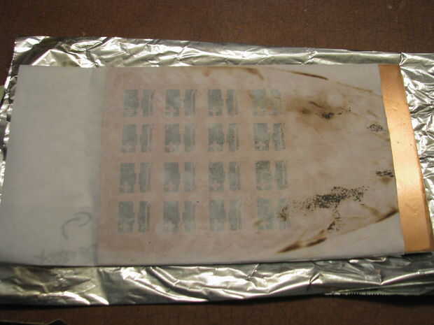 Método de transferencia de toner para la fabricación de tableros de PC es muy práctico y económico. No es el uso de calor para la transferencia. Tableros grandes amplían con calor (más que la impresión láser) y se aplica calor a la parte superior del