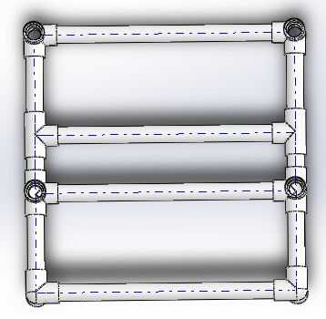 -La base consisten en 4 tubos de PVC conectadas por salidas laterales de 90 grados