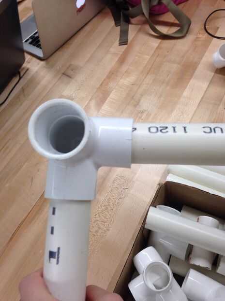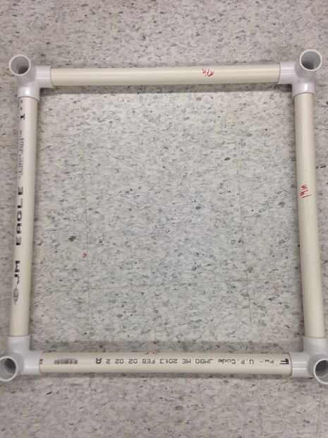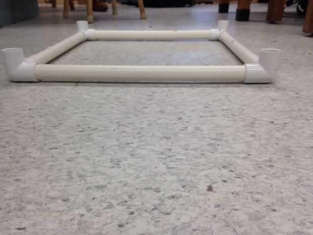 - Para crear la base utilizamos 19 en PVC tubería y 90 grados secundarios de comunicación. Conecte cada 19 in PVC tubo a la salida de 90 grados hasta que quede un cuadrado completo como se ve abajo.