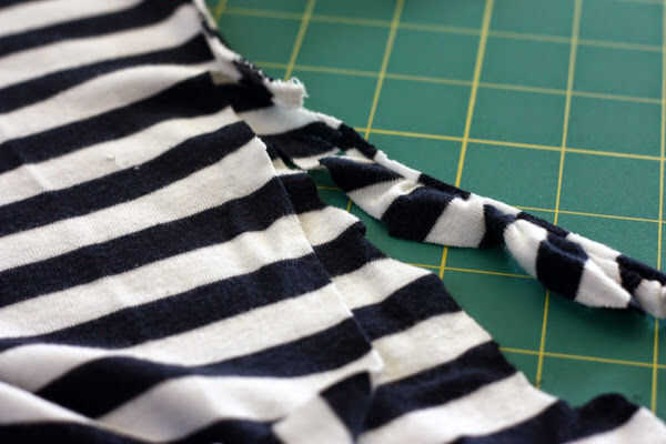 Después de cortar las costuras en la parte posterior de la camisa, corte a lo largo de las costuras abiertas en la parte delantera de la camisa justo contra la costura del fabricante para quitar las costuras y fruncido.