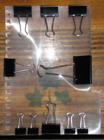 2) clips de carpeta pequeña 4. éstos van a lo largo del borde inferior de la lupa de la hoja para reducir la flacidez.