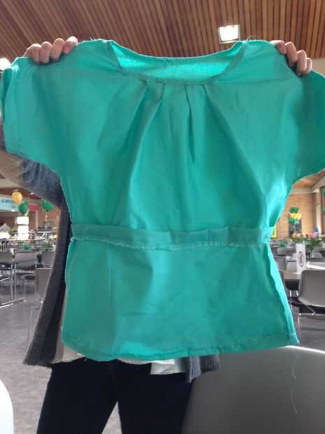 dobladillo inferior de la camisa girando adentro hacia fuera y dobla la parte inferior sobre y pin que para facilitar la costura. coser