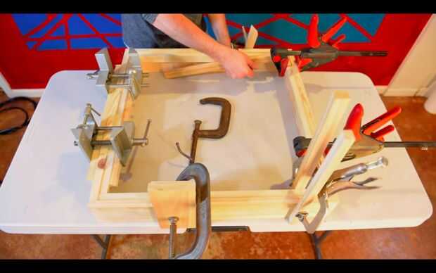 - Aplicar pegamento de madera en el plano 1" de la 0,75" x 1" x 20.5" y fijarlo con la abrazadera justo por debajo la línea trazada en el paso 1 y contra el lado más corto de la estructura (0,75" x 3.5" x 22")
