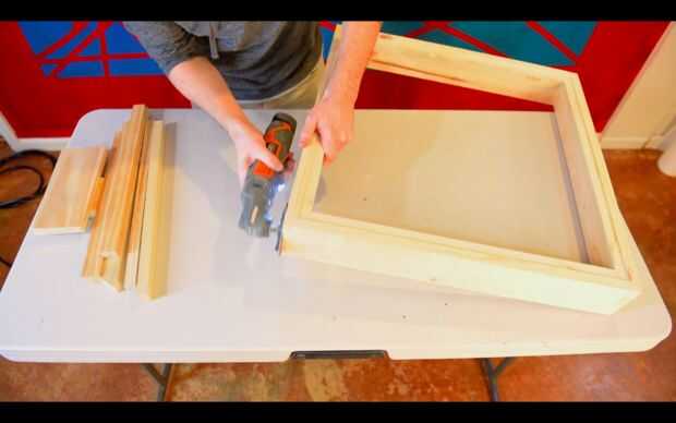 Si el cuadro no es muy cuadrado, no se preocupe, sólo bofetada algún relleno de madera en los boquetes. Dejar eso seco y luego le dan una luz de arena.