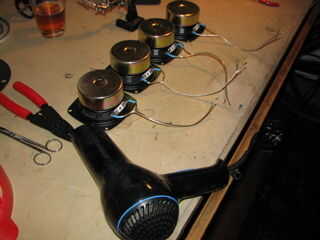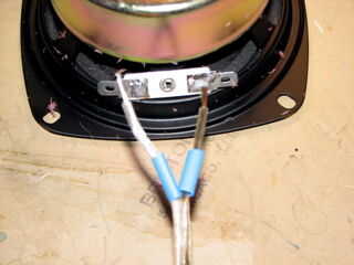 Cortar algunas longitudes cortas (3/4") de la tubería del encogimiento del calor e hilo de rosca en un extremo de un cable de altavoz. Los extremos a los terminales de altavoz, deslice la tubería sobre los empalmes de la soldadura, la soldadura y utilizar una pistola de calor a la tubería del encogimiento.