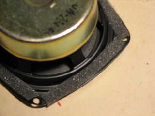 Me encontré una línea de burletes de espuma abierto alrededor del borde de todos los altavoces laterales. (La brida del altavoz superior encuentra al ras contra el "pie" del tazón de fuente). El propósito es cubrir la brecha entre la brida del altavoz y el tazón de fuente, y ocultar los bordes sucios.