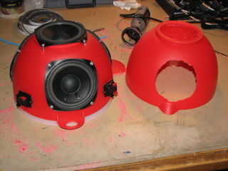 Para asegurarse de que son exactamente 120 grados apartes, utilizadas un pedazo de calor retráctil tubo (o similar) para medir la circunferencia del recipiente. Luego dividir la circunferencia en tres y el mismo tubo se utiliza para marcar donde debe ser el centro de cada altavoz.