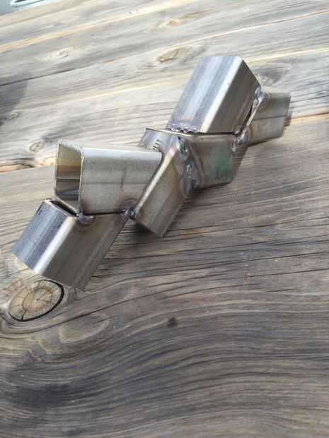 fabricación de montaje completo 3-dimensionalPaso 1: Corte/inglete mixta 30 grados Soldadura de filete MIG 30 gradosPaso 2: TIG soldado con autógena doble cara Paso 3: Perforación tapping, fijación Paso 4: Corte/inglete 45 grados conjuntos Filete de
