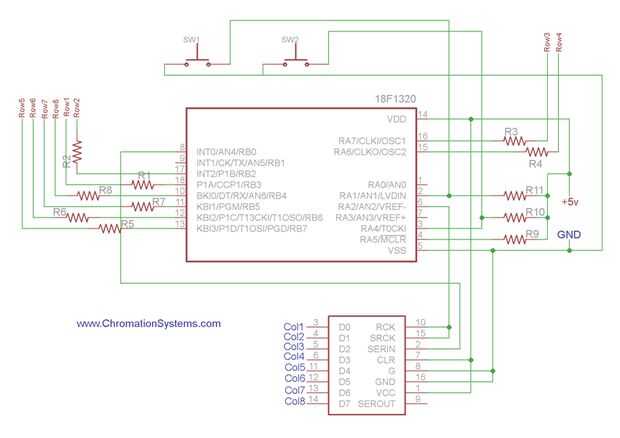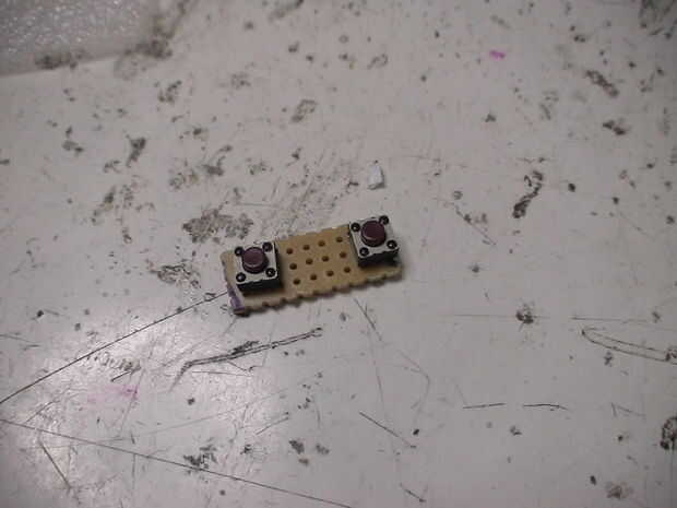 Por último para este paso es conectar los interruptores en algunas perfboard, asegurándose de que su espacio se alinean con los agujeros perforados en el marco. Una conexión en ambos interruptores están conectados a tierra, sus otros lados a un puerto PIC, ver el esquema.