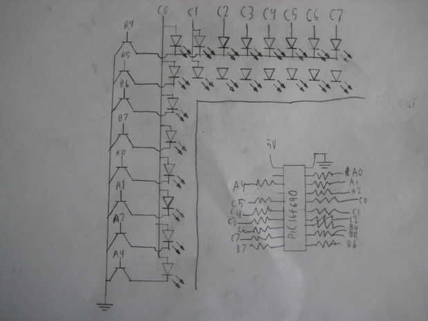 después de hacer una matriz de 8 X 10 mucha gente me preguntó acerca de ampliar la matriz a algo más grande y algunos quisieron escribir cosas a la matriz mediante un PC, así que un día miré un montón de LEDs que tenía sobras de un cubo de LED proyec