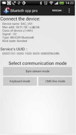 Instalar el libre Bluetooth spp profesionales aplicaciones en su teléfono inteligente Android, encender la pantalla y establecer comunicación Bluetooth entre ellos. Luego configurar Bluetooth spp aplicaciones profesionales botones para enviar mensajes y comandos en consecuencia.