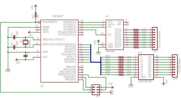 - Es mejor filtrar el voltaje suministrado para el ATmega8. Use un 0.1uf condensador entre el Pin 7 y 8 del ATmega8