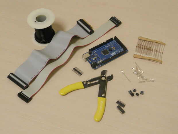 -Elegí el Arduino Mega porque quería construir una matriz de 16 x 16 y necesitaba 32 salidas para esto. Puede utilizar la Arduino Uno (14 pines I/O), pero se limita a una matriz de 7 x 7 y no hay espacio para un controlador.