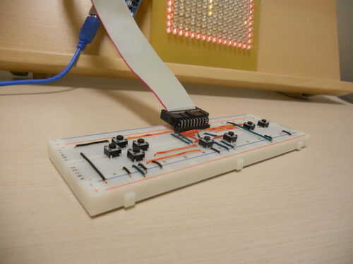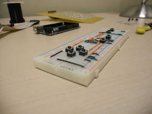 Los chips Atmel que usan los Arduinos tienen una resistencia de pull-up de 20KOhm incorporado. Vamos a utilizar esto para nuestros puertos de entrada. Utilice el tutorial de input_pullup para aprender a usarlo. Los pernos se definen mediante pinMode como input_pullup y set alta con digitalWrite. Este perno de la entrada se puede tirar baja a través de un interruptor conectado a GND. Por lo tanto, en su controlador, debe conectar un lado de cada botón a un puerto de entrada. El otro lado debe estar conectado a una toma de tierra. Cuando el botón está pulsado, digitalRead(pin) se va desplazando bajo y volver a alto cuando se libera.