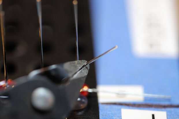 Puede ahorrar tiempo mediante la reducción del plomo del cátodo antes de insertarlo. Debe ser por lo menos 1/2" de largo. La inserción de los LEDs con alicates de punta es la mejor manera que he encontrado. Sólo asegúrese de que empuja contra la caja de plástico y no las puntas.
