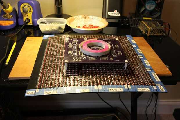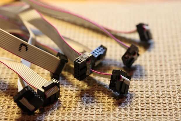 El cable rojo es el índice el conductor. En este proyecto está siempre conectado a '0' LED de una fila o columna y en el pln número 1 en el conector de la placa (no hay ningún pin 0). Si está utilizando el cable de cinta del tipo arco iris, solo ser consistente con el cable de su índice.